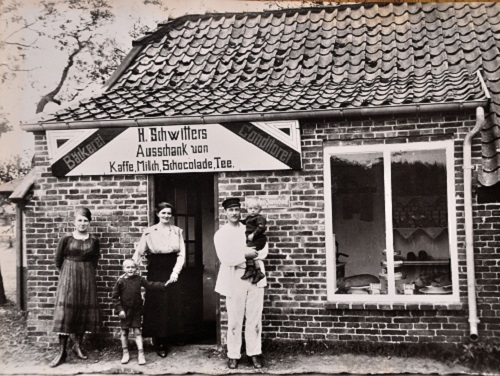 1921 kam der Bäcker und Konditor Hinrich Schwitters mit seiner Ehefrau und seinen zwei Söhnen Wilhelm (genannt Willy) und Arthur nach Langeoog. Hinrich Schwitters hat seine Bäckerei in Wittmund verkauft, weil ihm die Ärzte rieten aufgrund der besseren Seeluft nach Langeoog umzusiedeln. Bereits im Herbst 1921 durften die Schwitters alkoholfreie Getränke in der Kaffeestube neben ihrer Inselbäckerei ausschenken.